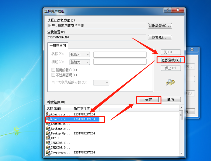 在新窗口中点击“立即查找”,在搜索结果中选中“Administrators”