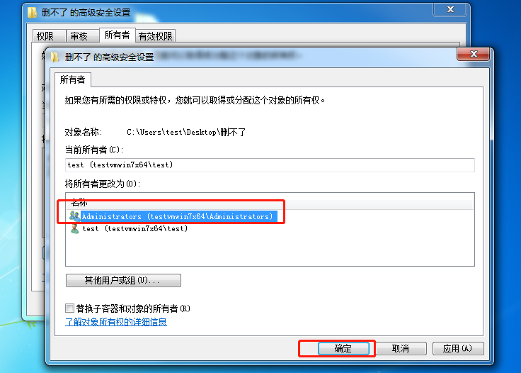 将所有者更改为“Administrators”,最后依次点击“确定”三次。
