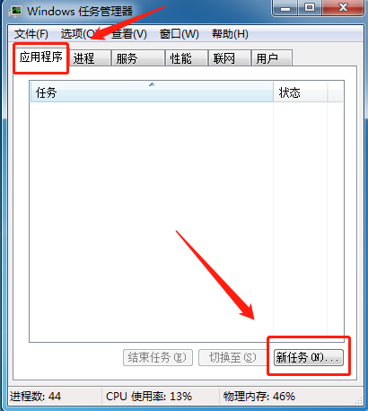 之后在应用程序页中点击新任务,创建一个新的进程。