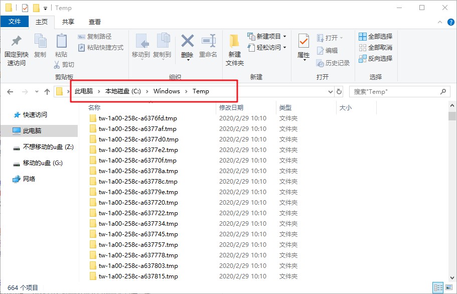 文件夹位置:此电脑\C:\Windows\Temp