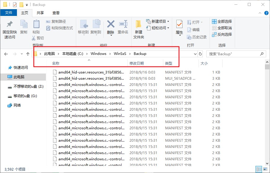 文件夹位置:此电脑\C:\Windows\winsxs\backup