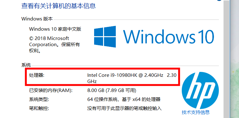 比如Intel Core i9-10980HK @ 2.40GHz。