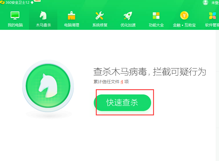 4.检查计算机是否为恶搞病毒,建议使用360软件检测特洛伊木马的查杀和系统修复。