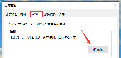3、选择“系统属性”的“高级”选项,然后点击“性能”的设置按钮。