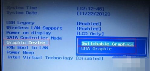 3,移到“Graphic Device”选项并按回车键展开,这时我们会看到有两种显卡工作模式: