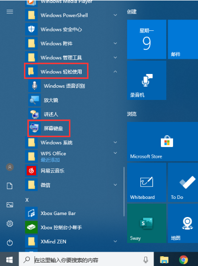 1,首先,点击任务栏左下角的“开始菜单”按钮,展开“Windows轻松使用”选项,点击“屏幕键盘”即可。