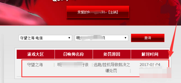 6,接着最后点击“查询”,等待系统查询一下,我们就可以看到我们自己的封号查询结果啦,到这里我们就完成了LOL英雄联盟如何进行封号查询的操作。