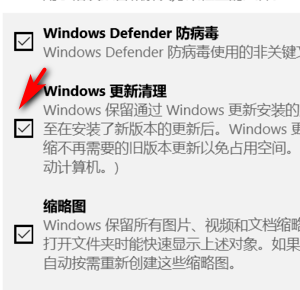 5、在空间清理页面中,先等待扫描完成,扫面完成后在该页面中找到并勾选“windows更新清理”前的复选框。