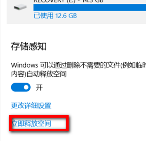 4、或者,点击立即释放空间,手动删除更新的旧的版本的windows文件。