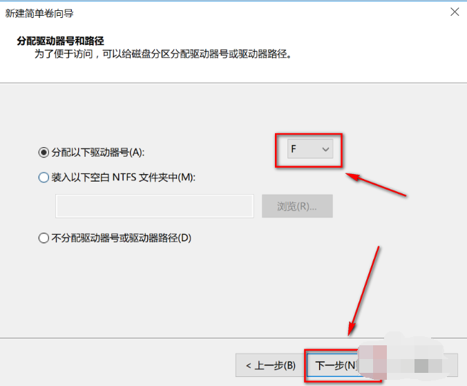 8,选择盘符,点击“下一步”。
