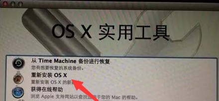 3,重启苹果电脑,在线安装 Mac OS X,期间保证电脑不能断电。完成后再次进入OS X实用工具中,选择“重新安装OS X”。