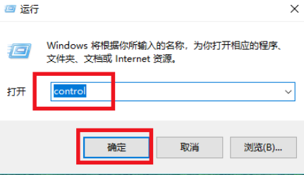 2。同时按Win R,打开操作对话框,输入控件,单击确定。