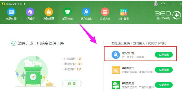 一。对于计算机资源排序,我们可以使用360安全卫士在其主页上找到计算机清洗功能。