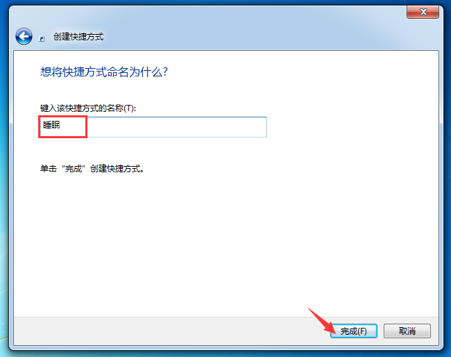 3。将快捷方式名称更改为sleep,并在设置后单击finish。