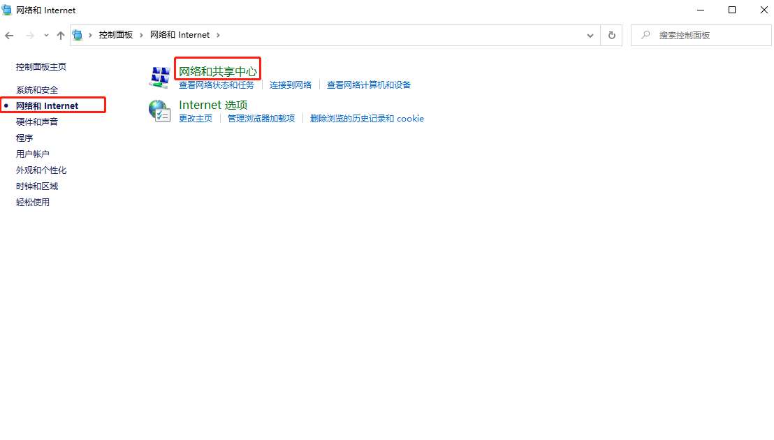 1、我们进入控制面板中的“网络和Internet”(控制面板可以在开始菜单中的“Windows 系统”打开)。