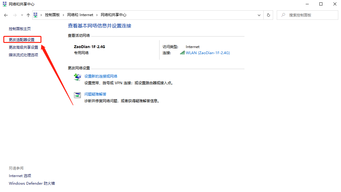 3、打开更改适配器设置。