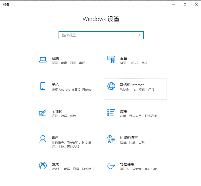 2.进入后点击”网络和Internet",再点击左侧菜单中的飞行模式。