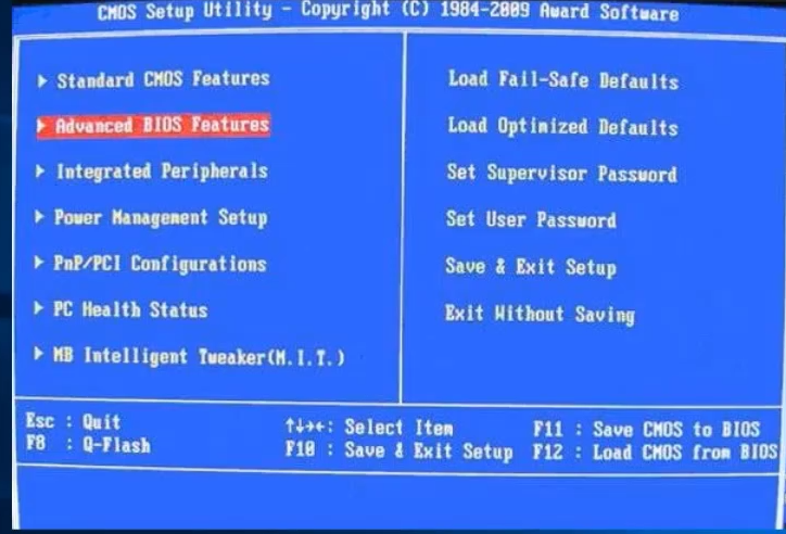 1.Award BIOS:开机后按下bios启动热键进入BIOS,然后在图中选择选项。