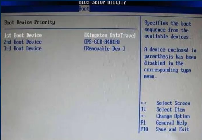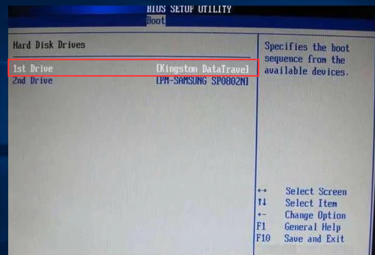 6.选择U盘作为引导设备的第一启动项,然后按F10保存退出并重启即可。