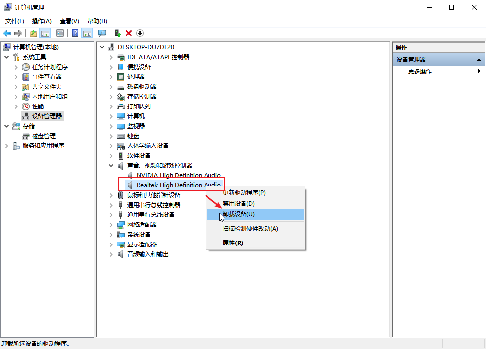 如果声卡驱动不正常如何卸载呢?