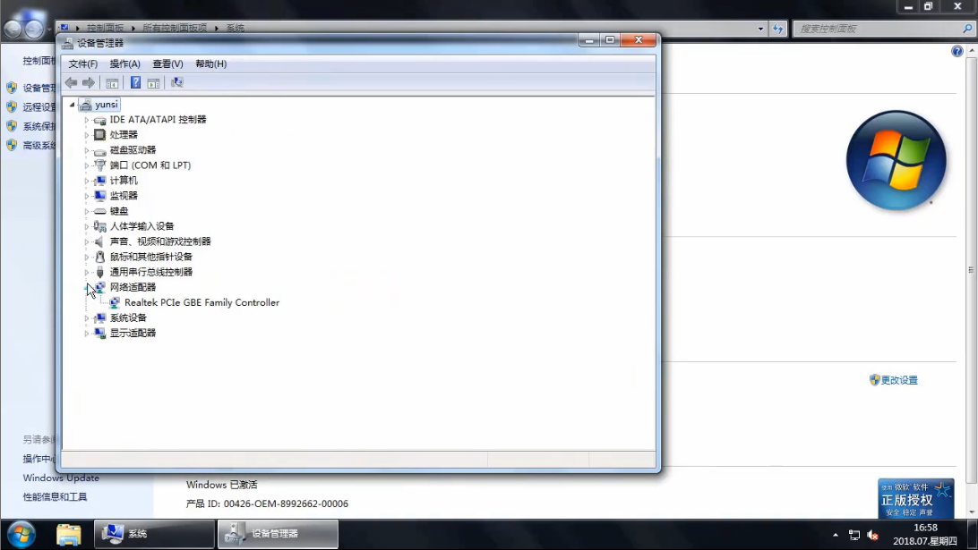 3、点击展开【网络适配器】选项,在这里可以看到电脑的网卡,如果有黄色感叹号的话说明网卡驱动没有安装好。