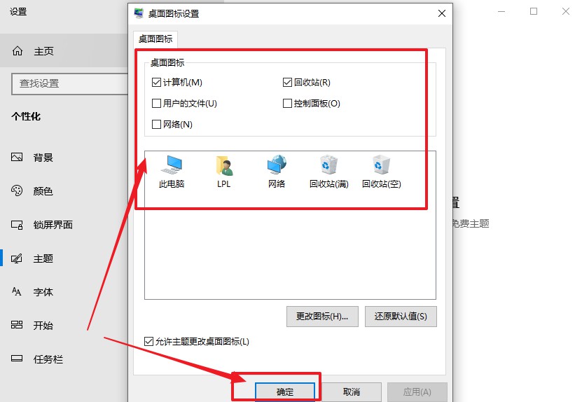 3、最后,在将所需要的图标前面的勾选上,点击“确定”之后,你就会发现电脑桌面图标回来了
