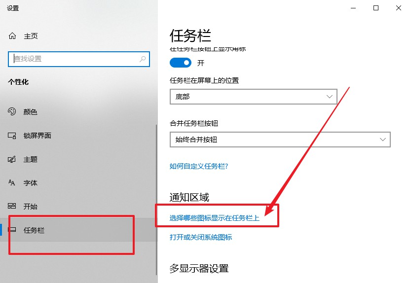 2、然后,点击“任务栏”选项卡,点击“选择哪些图标显示在任务栏上”