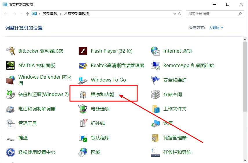 2、 打开控制面板之后,如图所示,点击“程序和功能”