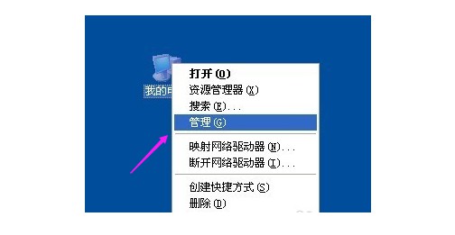 1、 右键桌面上“我的电脑”,选择打开“管理”窗口
