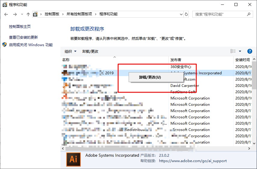 3、 最后,在应用程序框内,右键选择可疑的不兼容的软件,选择“卸载”即可,重点排查最近安装的应用软件