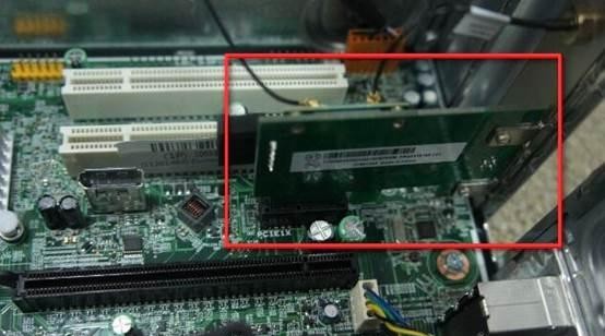 3、 台式机已加装PCI-E无线网卡的机箱内部示例,如图所示