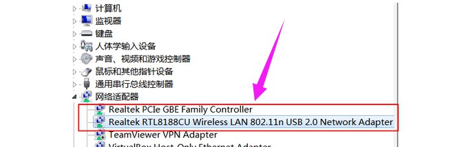4、 然后,再打开“设备管理器”,来检查此网卡安装情况,没有黄色感叹号表示安装成功