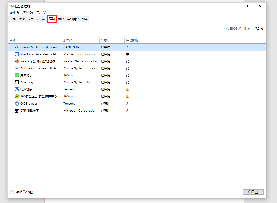 进入上图窗口中,在上图窗口中选项中点击“启动”,就可以操作管理自己电脑的开机启动了。