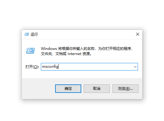 快捷组合键使用后Windows键+R键就会弹出上述的运行窗口,我们在窗口中输入“msconfig”这个指令。