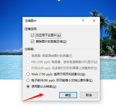 在窗口中选择压缩选项和分辨率等选项,点击确定完成图片压缩,压缩完图片的大小就比压缩前图片的大小有了明显的大小变化。