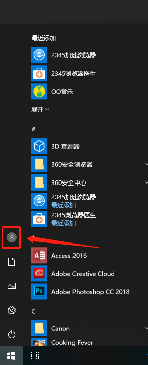 我们打开电脑,然后鼠标点击“开始”菜单按钮,在左侧选项中找到我们“电脑账户图标按钮”。