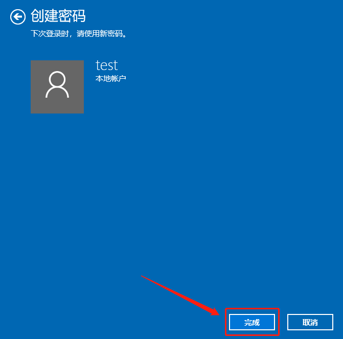 设置好密码点击下一步,进入下一个界面,我们点击“完成”,在下次登录时,就需要输入设置的开机密码了。
