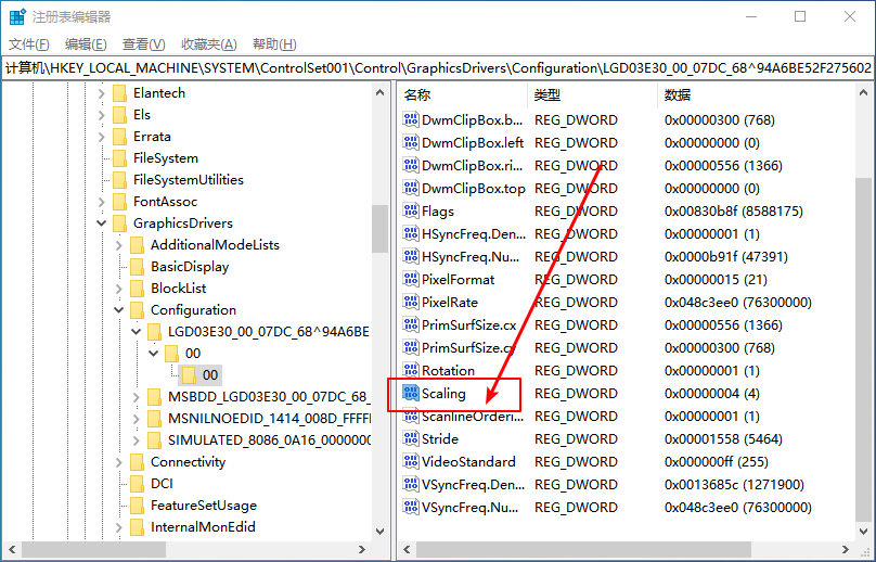2、注册表编辑器里定位到 HKEY_LOCAL_MACHINE\SYSTEM\ControlSet001\Control\GraphicsDrivers\Configuration
