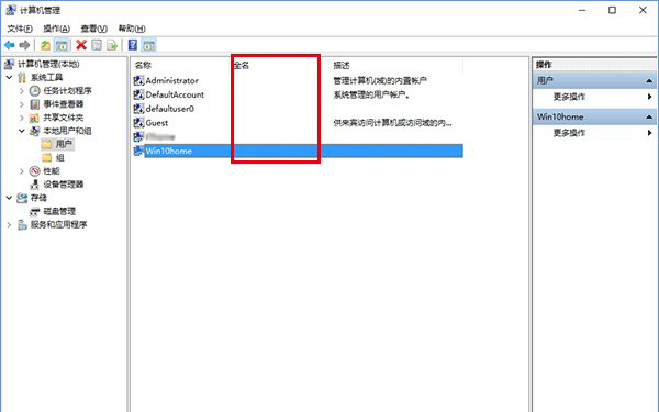 2、随后,依次点击进入系统工具→本地用户和组→用户,在中间找到小号账户名,如下图;