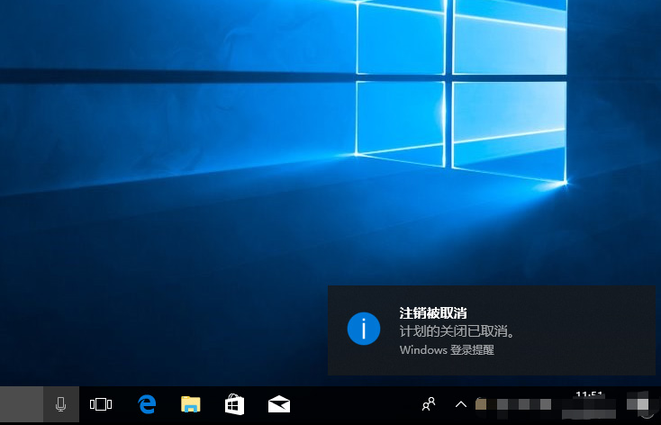 3、最后,你可以桌面右下角看见取消自动关机倒计时的提示信息