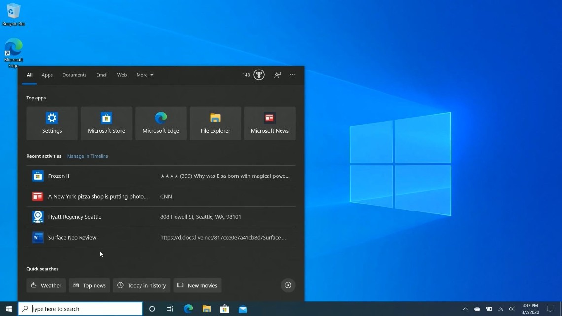 而之前的资源占用大户Cortana小娜助手,在Win10 2020正式版中也进行了改进,变成了一项独立的应用,本质上和其它UWP应用是一样的,你可以自行更新以及更改窗口的位置、大小等等。