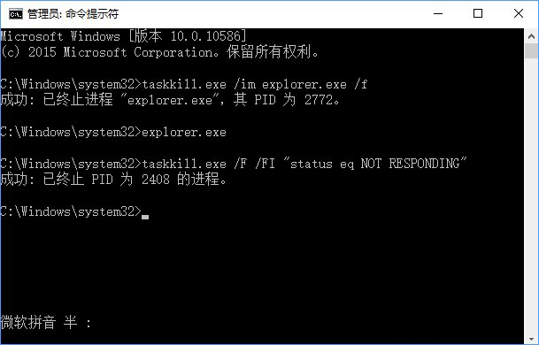 【taskkill.exe /F /FI "status eq NOT RESPONDING"】