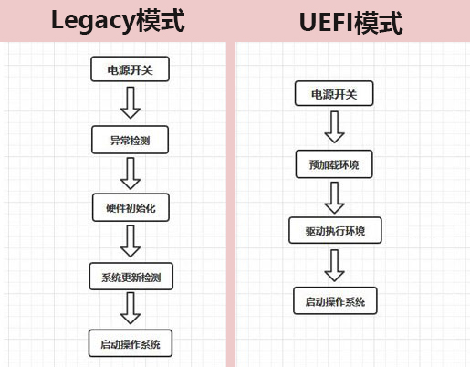 关于传统Legacy(MBR)对比UEFI(GPT)模式,在启动运行流程上,就不太一样~