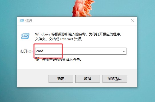 1、 同时按住【win+R】打开运行窗口,输入【cmd】并回车打开命令页面