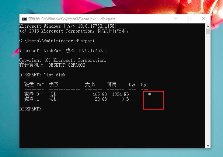3、 随后,继续输入【list disk】并回车