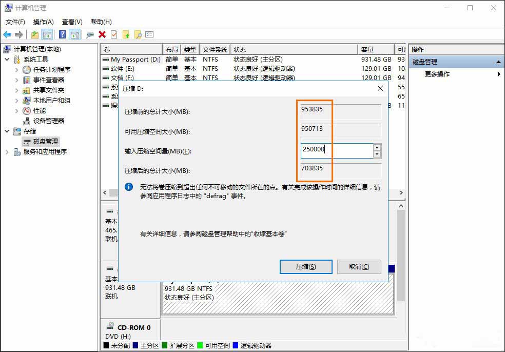 6、计算好需要压缩的空间以后,确认无误单击“压缩”就可以了。