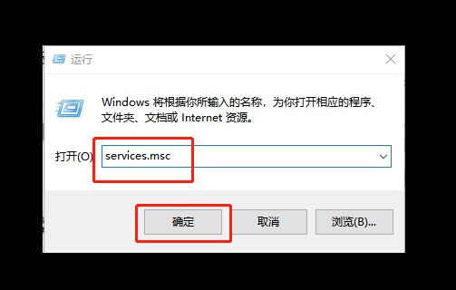 4、然后,同时按住Win +R打开运行,输入“services.msc”;