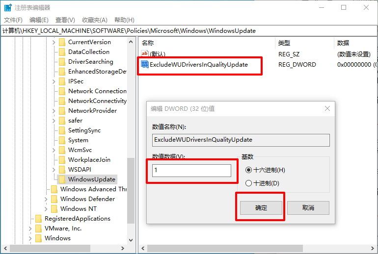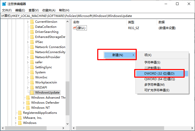 3、在右侧空白处单击右键,新建“DWORD(32位)值”,命名为ExcludeWUDriversInQualityUpdate