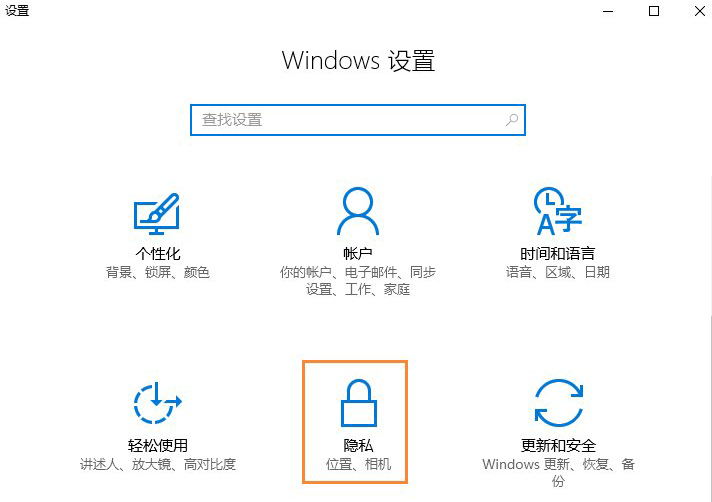 1、按Win+i打开系统设置界面,点击其中的“隐私”选项。