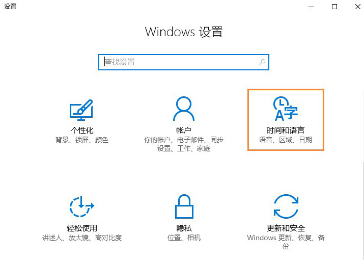 4、在设置界面点击“时间和语言”